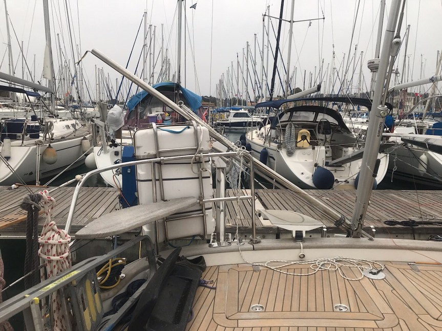 Mit den Handwerkern war seit Wochen alles vorbesprochen. Sie hatten für die Montage zwei Tage veranschlagt, unsere interne Erwartung war vier Tage, sodass wir dann die zweite Woche segeln wollten. Ergebnis jeweils nach inzwischen 10 Tagen: Am Ende des Tages …