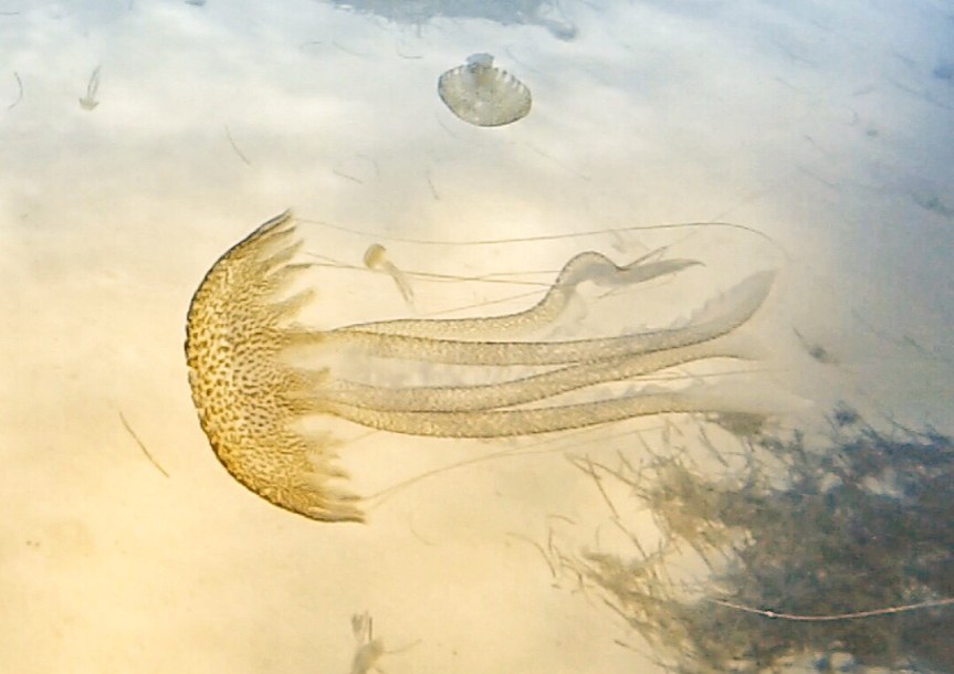 Das der Badestop sehr kurz ausfiel, lag an den hübschen, aber ungeliebten Badeverderbern, die sich zwar 2 m unter uns aufhielten, aber äußerst zahlreich waren. Ich musste extra runtertauchen, um sie zu fotografieren. 😊
