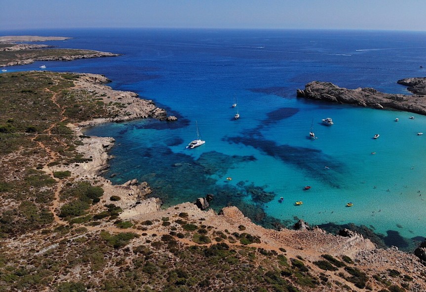 Mit zwei Booten war sie auch gefüllt, mehr hätten kaum ohne Beeinträchtigung der geschützten Posidonia-Seegrasflecken ankern können. Diesmal keine lästigen Quallen, sondern herrlich viel Fisch vor der Maske beim Schnorcheln.