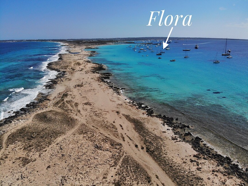 Mit Catalina haben wir nach dem Abschied von Jan etwas weiter nördlich auf Formentera in die Karibik Europas verholt, auf den Ankerplatz Platja de Ses Illettes. Na klar, wir waren nicht ganz alleine dort. Aber den Schutz des schmalen Sandstreifens vor dem immer noch steifen Ostwind und das traumhaft klare Wasser durften die anderen ruhig mit uns genießen, Platz hatten wir genug.