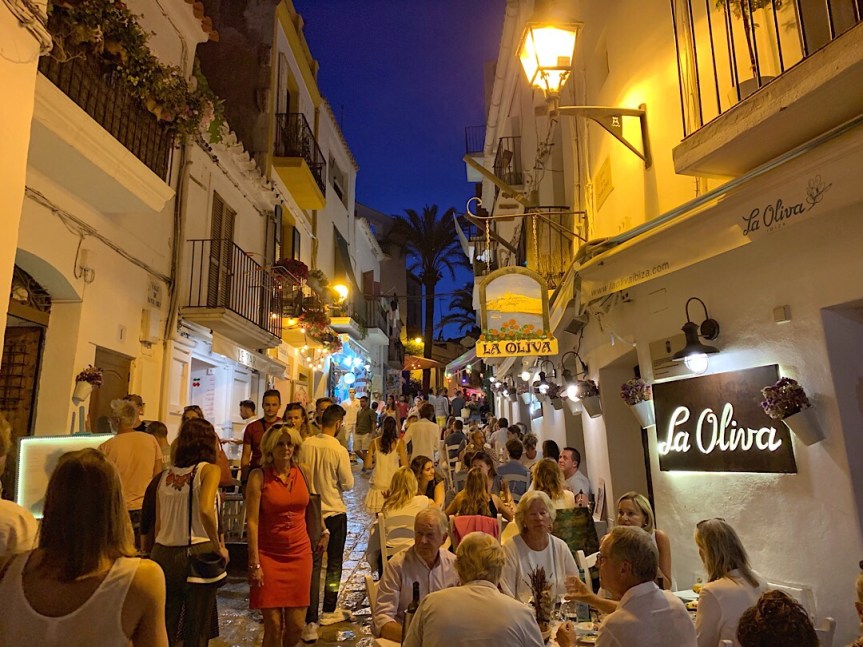 Da war es tatsächlich in unserer nächsten Ankerbucht enger, denn gestern haben wir zurück nach Ibiza verholt, ganz in den Süden in die Ensenada de la Canal. Das gab uns die Möglichkeit, mit dem Bus nach Ibiza Stadt (Eivissa) hineinzufahren und den letzten Abend mit Catalina in Eivissas schöner Altstadt und der innerhalb der Stadtfestung gelegenen Oberstadt zu feiern.
