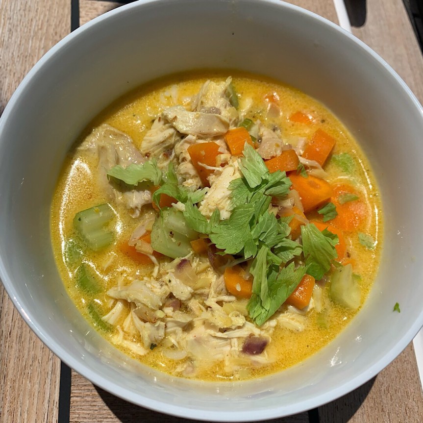 Dafür haben wir einen super Tip umgesetzt, den ich in einem anderen Blog gelesen habe. In vielen Supermärkten gibt es frische, fertig gegrillte Brathähnchen zu kaufen. Das haben wir in Palermo gemacht, Ralf hat alles gepult und wir haben das Fleisch vakuumverpackt und ab in den Kühlschrank. Das hält ein paar Tage. Mit der zweiten Portion gab es dann eine asiatische Currysuppe.