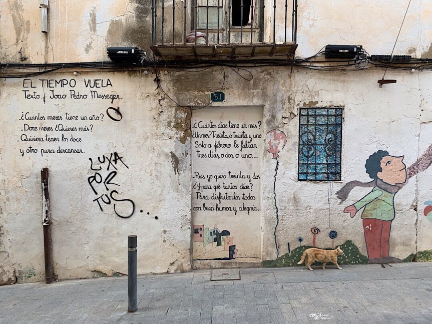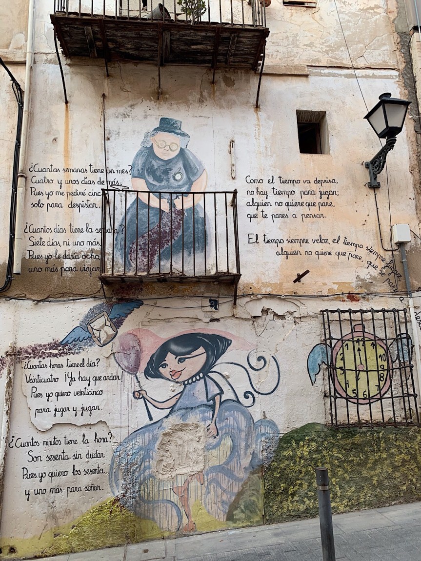 Aber besser so, als wenn uns Zeit fehlen würde. Dazu haben wir gestern hier am Rande der Altstadt eine schöne Wandmalerei entdeckt, El tiempo vuela (frei übersetzt: die Zeit vergeht im Flug):