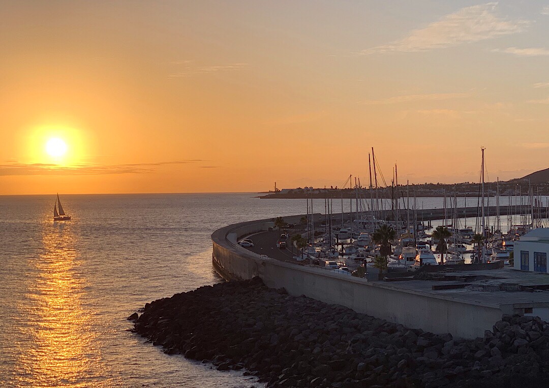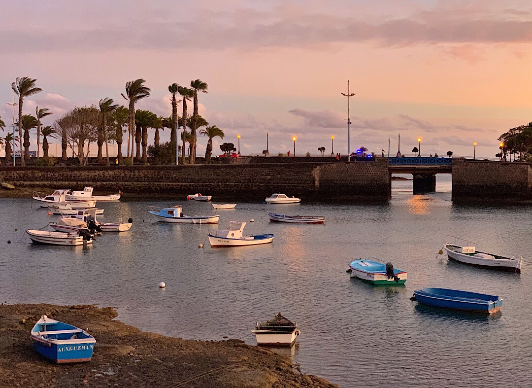 Aber: beim größeren Schiffsausrüsterladen in Arrecife habe ich doch tatsächlich eine passende Ersatztoilette gefunden. Jetzt gibt’s also wieder zwei funktionierende an Bord 😊. Haben wir gleich mit einem schönen Abendessen in der Stadt gefeiert, mit Blick auf die fast trockenfallende Lagune mit ihren vielen kleinen Bötchen.