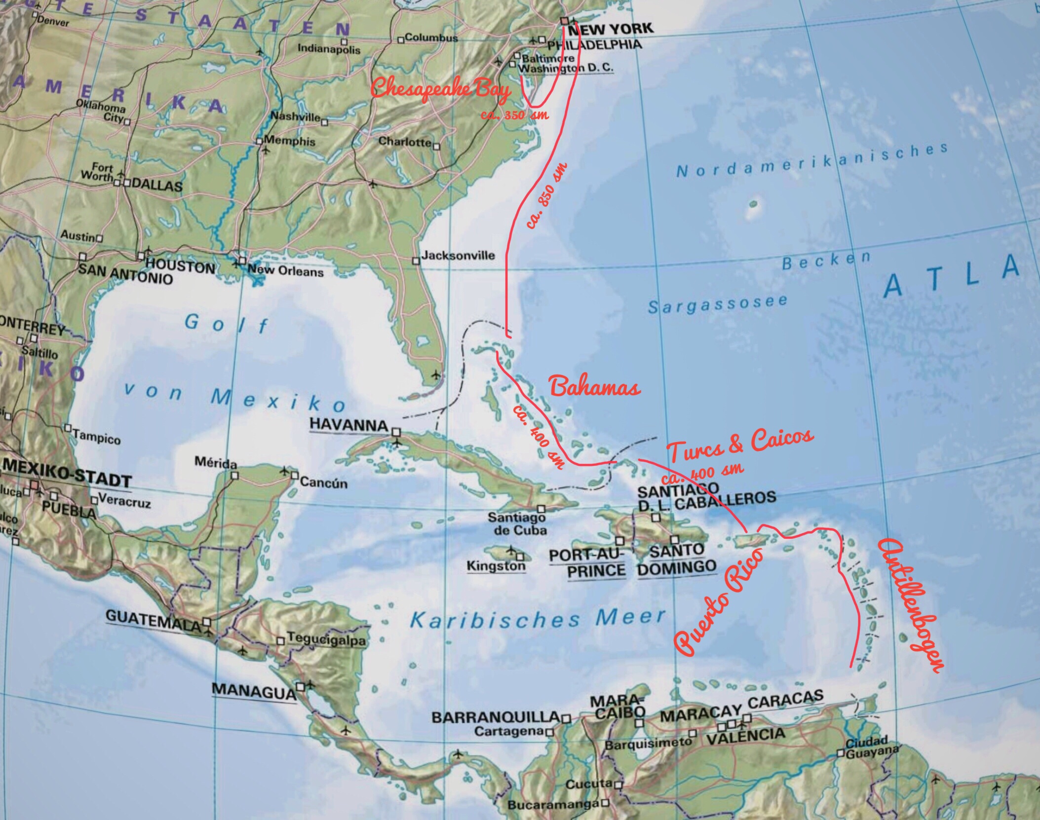 Unsere Bootsversicherung möchte uns zwischen Juli und Mitte November entweder südlich von Trinidad 🇹🇹 (unwahrscheinlich) oder nördlich von Florida sehen. Wir träumen ein bisschen davon, danach die US-Ostküste bis New York hochzusegeln. Dann würde uns ein längerer Abstecher in die Chesapeake Bay mit Landausflügen und wohl auch einer Stipvisite nach Deutschland 🇩🇪 vorschweben, um dann nach der Hurrikansaison wieder gen Süden zu segeln und evtl. die westliche Karibik mit z.B. Kuba 🇨🇺, Mexiko 🇲🇽 und Belize 🇧🇿 ins Auge zu fassen. Aber das wäre dann schon Planung für das folgende Jahr.