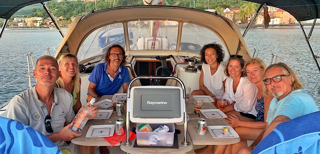 Und am Abend finden wir wir uns gemeinsam mit den Crews der Easy One und der 2nd try.2 schon wieder auf der Imperia ein und genießen Ti-Punch (Limette, 3 Teile Rhum-Agricole, ein Teil Rohrzuckersyrup, Eis nach Belieben, ein Klassiker hier der uns auch im Restaurant als Aperitif serviert wurde; haben wir gleich adaptiert).