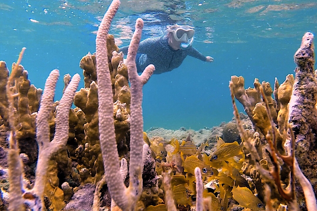 Aber nicht nur das Wrack fasziniert: wir schwimmen näher ans Ufer und schnorcheln dort durch erstaunlich viel Fisch und Korallen.