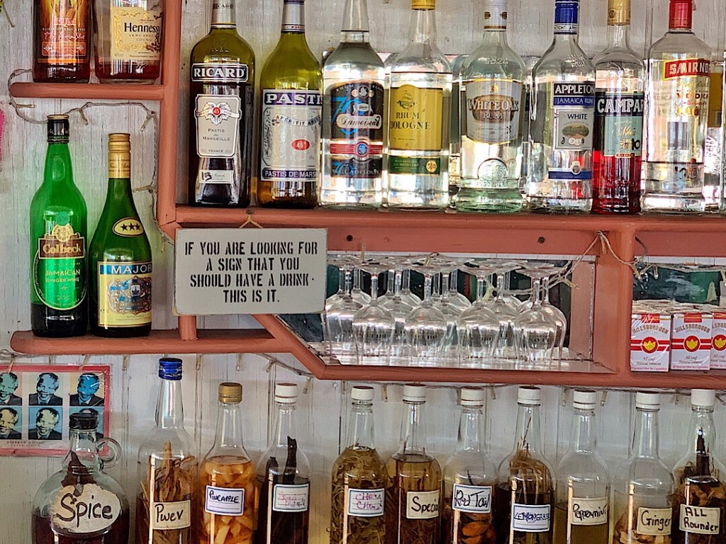 Im Moment gilt es ja wegen der Ausgangssperre, das Boot möglichst wenig zu verlassen. Da fällt es eher leicht, der in Bequia gesehenen Aufforderung „langsam zu leben“ nachzukommen. Obwohl: theoretisch könnten wir hier in Antigua ja noch jeden Tag den Ankerplatz wechseln und ums damit selbst in den Modus hektischer Betriebsamkeit versetzen. Und außerdem bricht ab morgen zwar die dritte Woche der Ausgangssperre an, aber der „Curfew“ wurde etwas gelockert. Vormittags ist jetzt bei Wahrung der Social Distance immerhin Spazierengehen, Hiken, Jogging und sogar Radfahren wieder erlaubt. Wir werden das nutzen und können dann immerhin nachmittags versuchen, aufkommende Unruhe einfach mal auszuhalten und den Tafelspruch ernsthaft umzusetzen. Deutlich vor Corona geschrieben, steht er für karibisches Lebensgefühl. Und hält uns damit auch den Spiegel vor, was außer Sonne, Wind, Strand und warmem Wasser uns ja eigentlich noch so alles hierher gezogen hat.