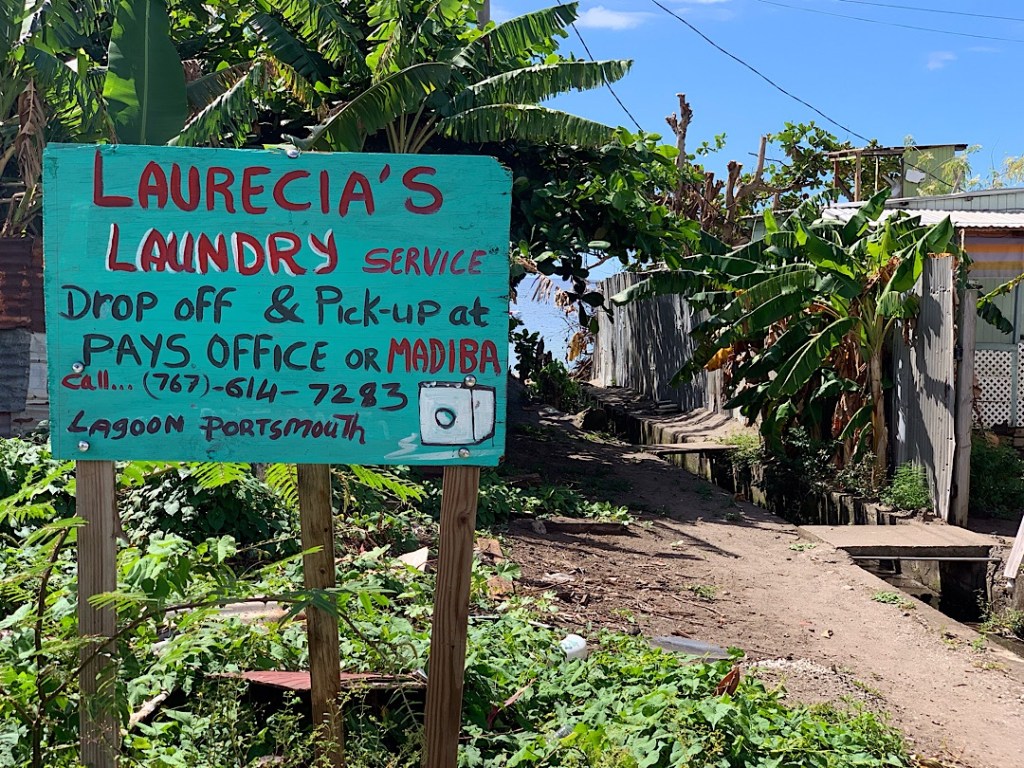 Ein geschäftstüchtiges Schildchen, wie auch das nächste, das stellvertretend für die vielen selbstgemalten und unperfekt sympathischen Werbetafeln der kleinen Läden und Betriebe ohne Neonglitzer (hier in Dominica) steht: