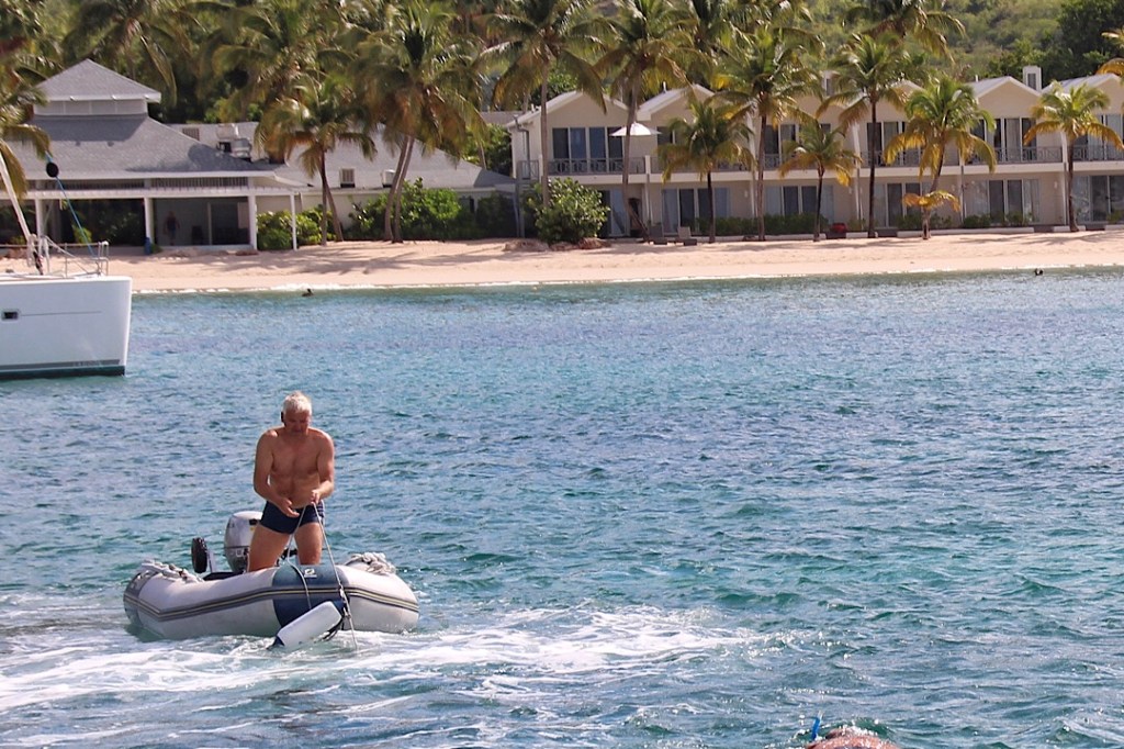Einsiedler oder Eremiten wollen wir deshalb aber trotzdem nicht werden, asketisch, bewusst ohne Ablenkungen und Reize. Im Gegenteil, soziale Kontakte sind uns wichtig und zum Glück können wir auch aus der Ferne die bestehenden weiter pflegen, durch diesen Blog und Eure Kommentare (über die wir uns riesig freuen) und durch andere soziale Medien; WhatsApp-Telefonie hilft uns ungemein. Auch wichtig für uns: neue soziale Kontakte am Ankerplatz entstehen, die UKW-Funkrunden in Jolly Harbour und ganz besonders auch zuletzt in der Carlisle Bay haben für ein tolles Gemeinschaftsgefühl gesorgt. Um so schöner, wenn wir dann bei Lockerung der Ausgangssperre Gesichter zu den Stimmen an der Funke zuordnen kann, am Strand noch maskiert 😷, von Dinghy zu Dinghy (oder Schiff) dann in voller Schönheit 😁. Wir haben es uns auch zur Gewohnheit gemacht, mit dem Dinghy bei unseren Nachbarn vorbeizufahren und uns vorzustellen, was meist gleich zu einem netten Gespräch führt. Der vor dem Lockdown übliche gemeinsame Sundowner fällt zwar aus, aber wer weiß, wann und wo wir den mal nachholen können, diese gemeinsam erlebte Sondersituation schweißt auch zusammen und bleibt ziemlich sicher in Erinnerung.