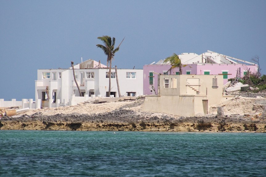 Wir sind heute Nachmittag nach 29 Stunden schönen Segelns und einer Stunde motoren durch die Riffpassage und über das leuchtend türkise 3 m – Flach hier an unserem Ankerplatz bei Marsh Harbour in den Abacos angekommen. Der Ankerplatz ist als solcher nicht in der Seekarte ausgewiesen, bei den eigentlich vorherschenden Ostwinden ist er ungeschützt, aber wegen der Nordost-Südwest-Ausrichtung der vorgelagerten Cays ist er einer der wenigen hier, die bei dem jetzt herrschenden Südwind guten Schutz bieten. Pittoresk geht anders, nicht nur weil mit Blick an Land und auch auf den Schrott unter Wasser überdeutlich ist, mit welcher Wucht und welchen Schäden der Hurrikan Dorian 2019 die nördlichen Bahamas verwüstet hat.