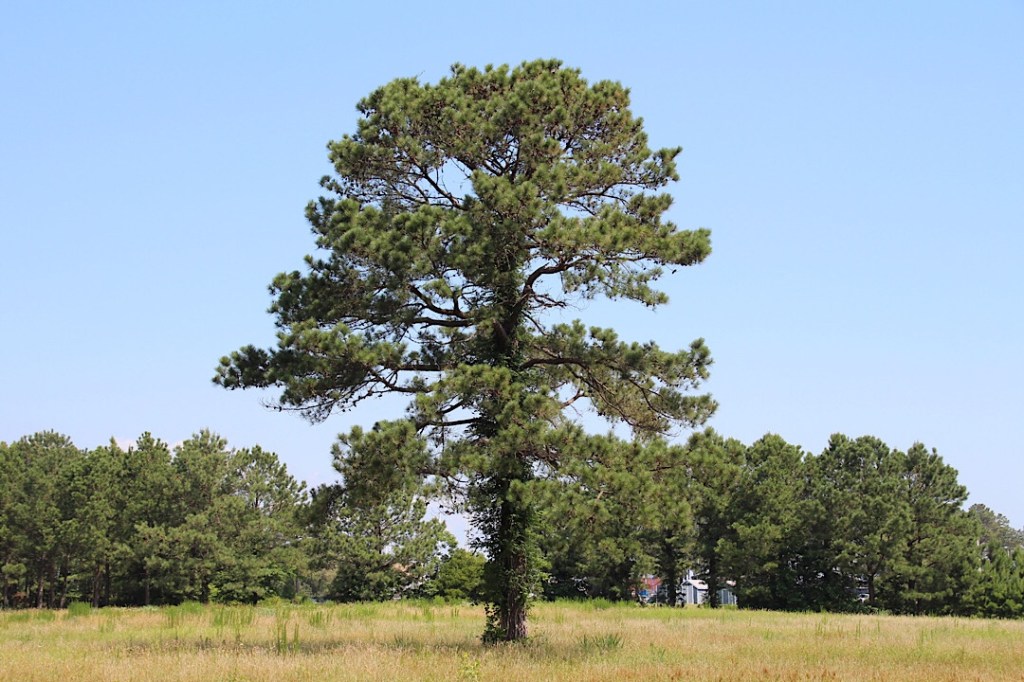 Wobei der Wald sich als lockere Mischung von Laub- und Nadelbäumen erweist, obwohl wir aus der Entfernung meinten, ganz überwiegend Laubbäume zu sehen und doch Nadelbäume zu riechen. Kein Wunder, wenn sich die Kiefern so tarnen: