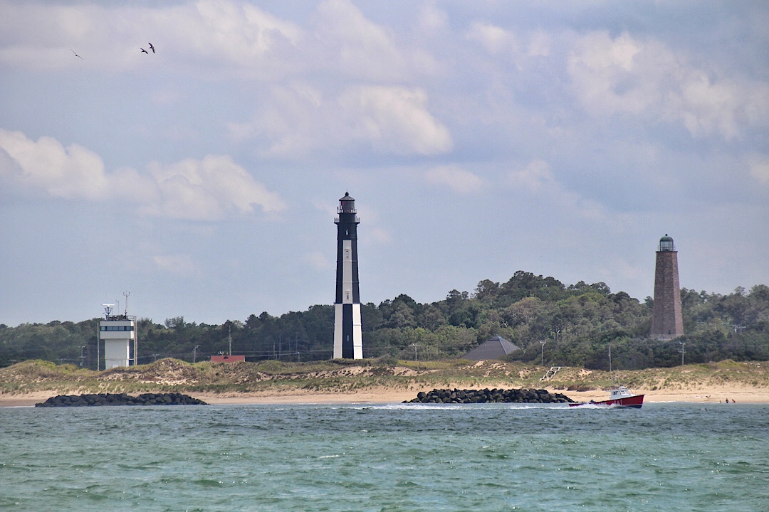 Ein kleines Stück weiter, am Cape Henry, gibt’s dann klassischere Leuchttürme zu sehen. Der rechte, ältesteste Leuchtturm von 1792 ist tatsächlich das erste autorisierte Leuchtturmprojekt der neu gegründeten Vereinigten Staaten von Amerika. Der mittlere, schwarz weiße Turm wurde „erst“ 1882 gebaut und ist tatsächlich bis heute in Betrieb.