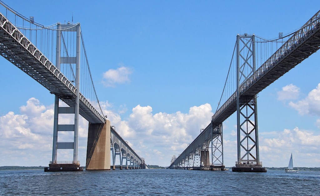 Und wir bekommen Besuch. Greg und Michael kommen an Bord, sie wollen uns die nächste Zeit begleiten. Gebracht werden sie von ihrem Neffen Roderick, mit dem wir noch einen schönen Nachmittag an Bord verbringen, bevor wir am nächsten Tag unter der markanten Chesapeake Bay Bridge Doppelbrücke weiter in Richtung Norden unterwegs sind.