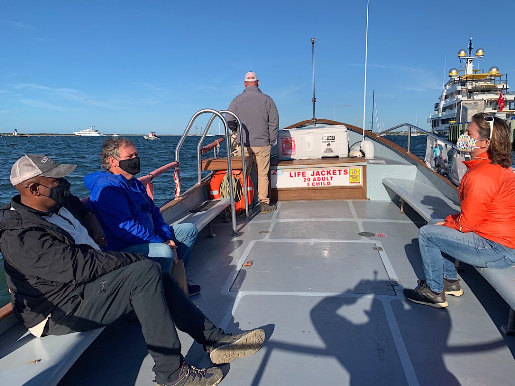 Aber für den Abschluss auf Nantucket gibts noch ein besonderes Geschenk. Wir hatten auf Sardinien die Amerikaner Maggie und Sam kennengelernt, die für eine Auszeit ihre Jobs gekündigt und in Griechenland ein Segelboot gekauft haben. Wiedergetroffen haben wir die beiden auf Gran Canaria und dann in Bequia, aber wir sind immer in Kontakt geblieben. Inzwischen haben sie hier in den USA ihre Contest 38 wieder verkauft, wohnen und arbeiten nun in Denver. Aber sie haben uns nachdrücklich aufgefordert, Maggies Stiefvater David in Nantucket zu besuchen und – Nägel mit Köpfen – gleich eine gemeinsame WhatsApp-Gruppe eingerichtet.