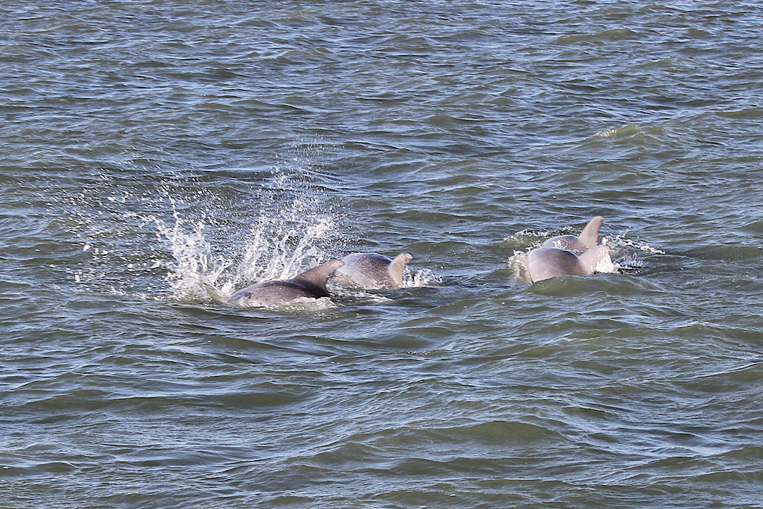 Gut geschützt hinter der inneren Mole werden wir am Morgen tatsächlich vom Prusten der Delfine geweckt, die ums Boot herum spielen, jagen oder einfach nur einen Familienausflug machen, ohne von der Flora besondere Notiz zu nehmen.
