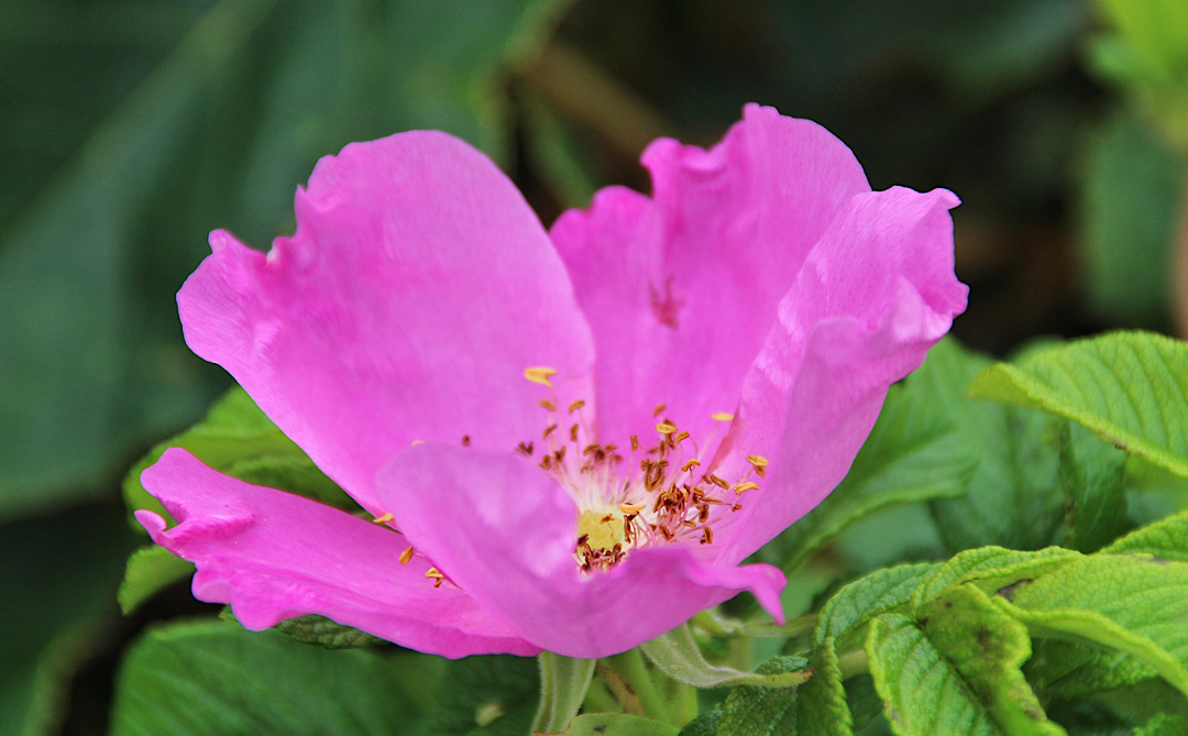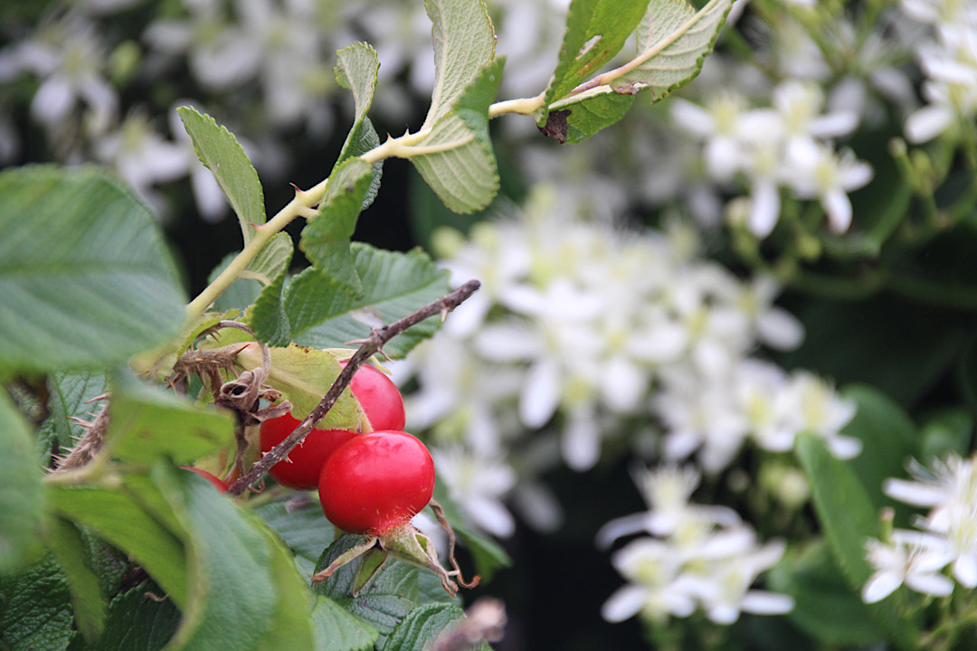 Die Fahrräder müssen wir hier abstellen, selbst zum Schieben ist es manchmal zu schmal. Dafür geht es mal durch einen Hohlweg, mal zwischen Wildrosen-Hecken hindurch, oft aber auch wirklich durch die Gärten der hier wieder durchweg mit Holzschindeln verkleideten Häuser, die hoch über dem langen Sandstrand der Ostküste auf der Klippe stehen.