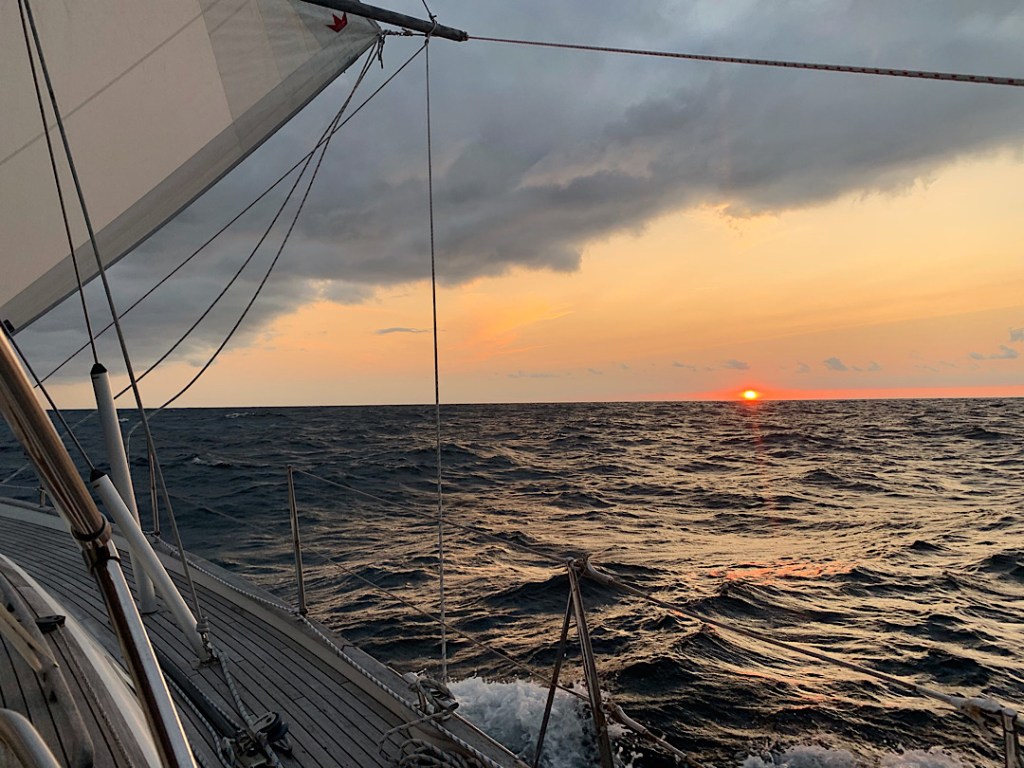 Mit dem ersten Morgenlicht brechen wir auf, die Fischer sind da schon unterwegs. 263 sm liegen vor uns, wir wollen von New Bedford in Massachusetts nach Lewes in Delaware, direkt an der Mündung des Delaware River. Idealerweise möchten wir im Hellen ankommen und nur eine Nachtfahrt dabei haben, deshalb der frühe Start. Wind genug sollte sein, zudem aus der richtigen Richtung, raum (schräg von hinten) bis achterlich. Mit dem langen Schlag möchten wir dem Tropensturm Teddy aus dem Weg gehen und auch wieder ein Stück nach Süden vorankommen, die Temperaturen werden derzeit herbstlicher (es soll aber auch in Neu England ab Mitte der Woche wieder wärmer werden). Trotzdem: heute ist es Mützensegeln, der Wind ist doch ziemlich frisch. Aber wir kommen unter Schmetterlingsbesegelung mit zweifach gerefftem Groß und der ausgebaumten Fock gut voran und es geht mit leicht abflauendem Wind in die Nacht.