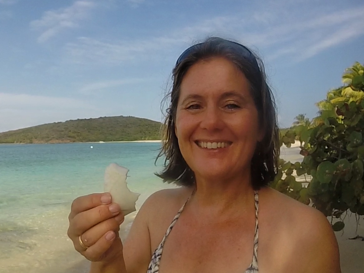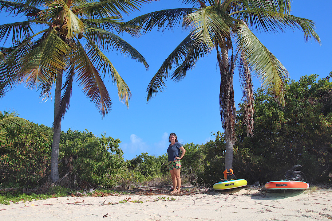 Und auch das Inselchen selbst verwöhnt uns. Am Strand finden wir ein offenbar gerade erst von der Palme gefallene Kokosnuss. Schnell mit dem SUP zurück an Bord, die Machete holen. Ja, ich bin da noch ziemlich ungeschickt, es dauert, (man muss auch erst das richtige Ende finden 😂) aber am Ende schaffe ich es doch die Kokosnuss verletzungsfrei so zu öffnen, dass wir erst das Kokoswasser trinken und dann die weiße Kokosschicht essen können.