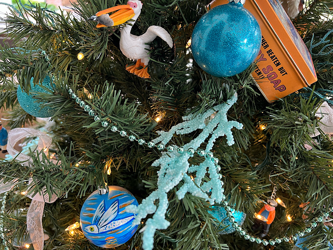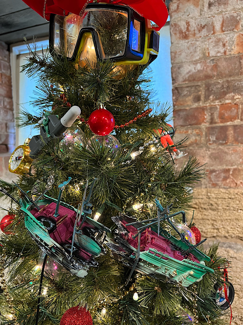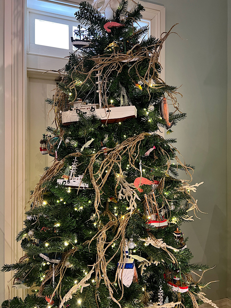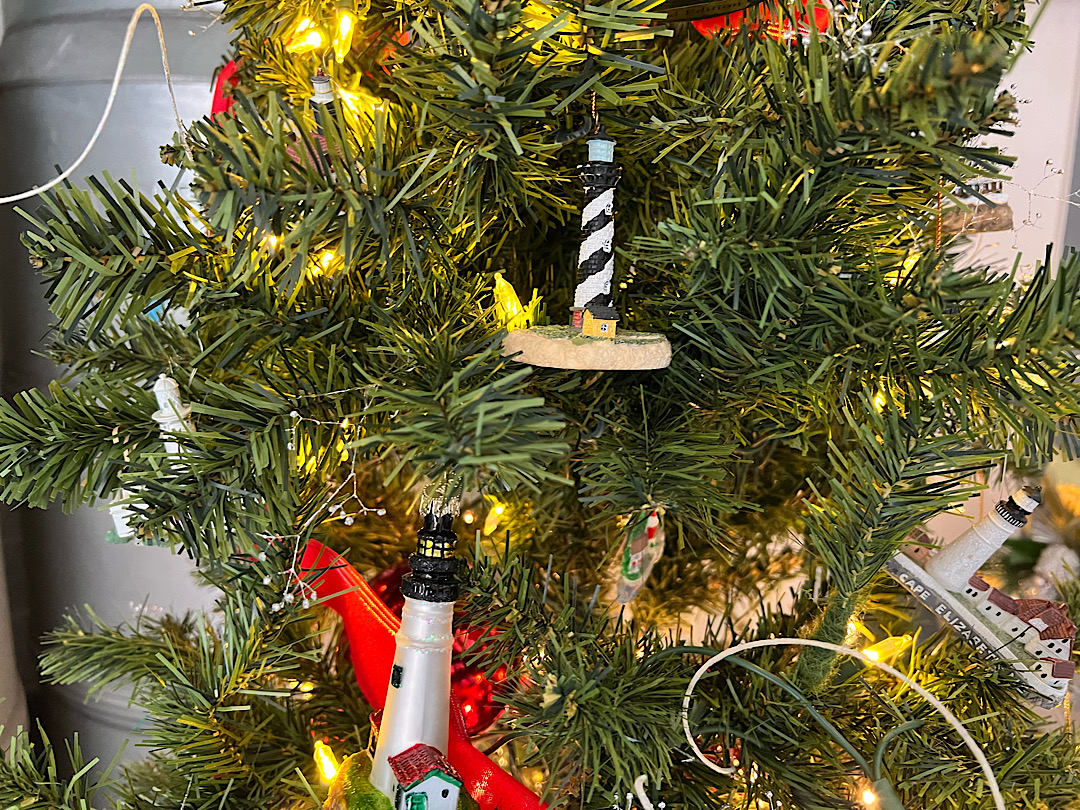 Das angeschlossene interessante Museum in den Nebengebäuden des Leuchtturms ist es ebenso, außerdem sehen wir in jedem Raum (und auch vor dem ehemaligen Außen-WC) verzierte Tannenbäume. Alle sind phantasievoll, detailversessen und sehr unterschiedlich (aber immer übervoll und bunt) dekoriert, hier eine kleine Auswahl: