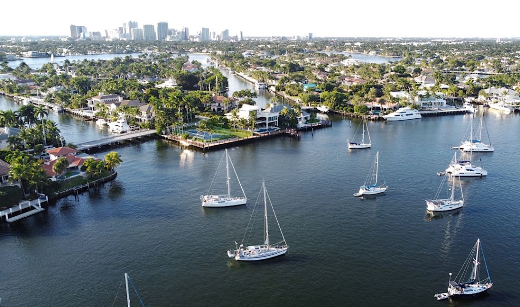 Eine Vielzahl von Wasserwegen durchzieht Fort Lauderdale. Sie zweigen links und rechts vom ICW ab, die Kanäle versorgen eine Unzahl von Grundstücken mit Wasserzugang. Unfassbare 40.000 Sportboote soll es hier geben. Andererseits: