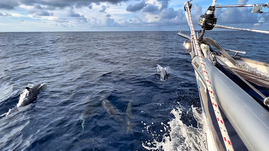 Danach herrliches Code0-Segeln. Und wieder Delfine. 🤩