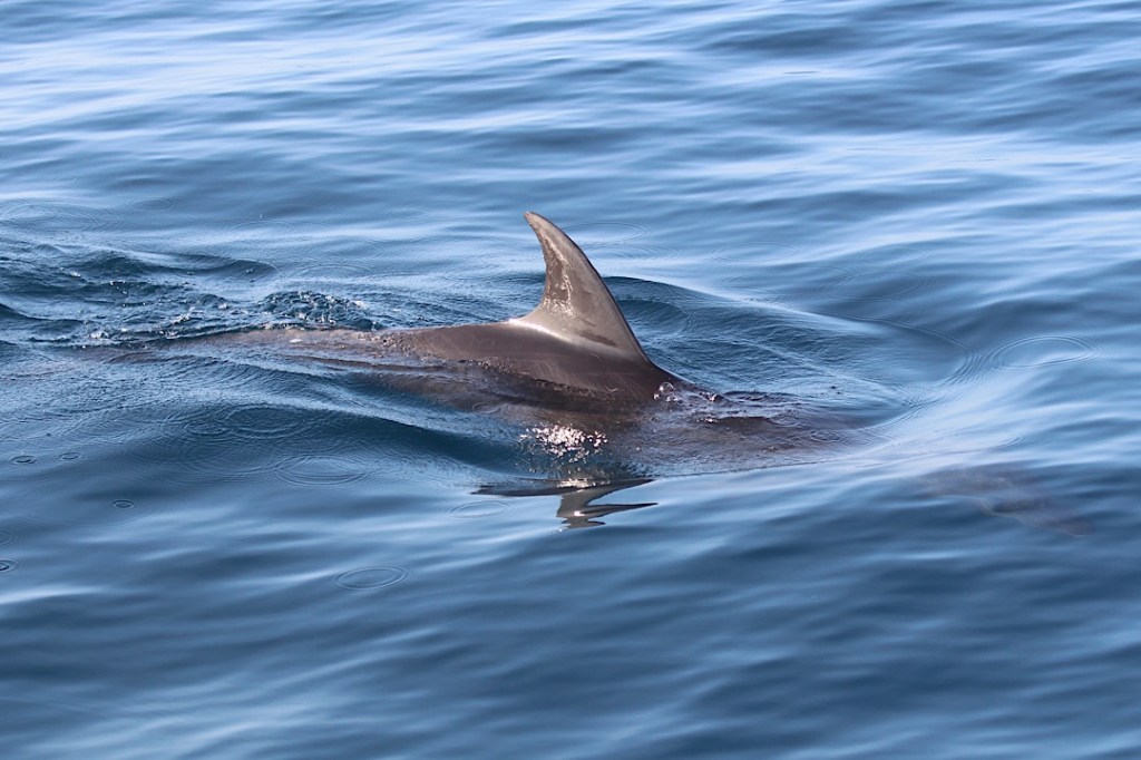 Und es gibt noch ein paar weitere tierische Begegnungen: in einiger Entfernung springt dreimal ein Schwertfisch, deutlich näher kommen uns Delfine, die ebenfalls Sprünge vollführen. Wahrscheinlich sind es die ziemlich aktiven Schlankdelfine, obwohl wir die meist typischen Sprenkelungen mit Punkten nicht entdecken.