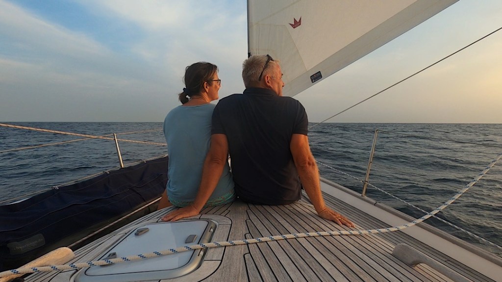 Am Nachmittag erst (wenn auch langsames) Segeln auf dem richtigen Kurs. Es ist so ruhig, dass wir weiterhin die Hängematte auf dem Vorschiff nutzen oder zur Abwechslung im Cockpit Karten spielen.