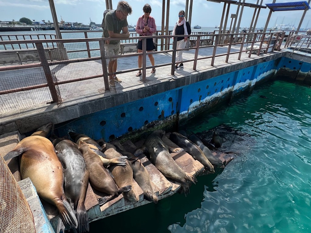 Natürlich ist schon der Gedanke, dass Fremde das eigene Schiff und Zuhause durchstöbern (können) unangenehm. Theoretisch sind entsprechende Kontrollen bei fast jedem Einklarieren in einem neuen Land möglich, praktisch haben wir das bisher zum Glück nicht erlebt. Der bekannt massive Personaleinsatz hier auf den Galapagos steigert ein solches latentes Unbehagen (im Vorfeld) eher noch. Aber alle vom Einklarierungsteam waren freundlich und super nett, die Vorbereitung und Begleitung durch den Agenten sehr professionell und hilfreich. Am Ende hat das Ganze eine gute Stunde gedauert (die Vorbereitung allerdings deutlich länger).