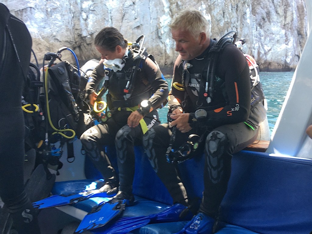 Morgen steht noch ein weiterer Tauchgang, vor allem aber ein Hike an. Bei bzw. auf Española, der südlichsten Galápagosinsel. Auf dieser 60 Quadratkilometer großen, von Menschen nicht bewohnten Insel soll es insbesondere auch Albatrosse und viele Blaufußtölpel zu sehen geben. Das wäre toll. Mit dem eigenen Boot dürfen wir die Insel nicht anlaufen, da sind wir auf die drei Inseln San Christobal, Isabela und Santa Cruz beschränkt. Das Tauchboot wird dafür also zum Taxi-Fährschiff auf diesem ausgedehnten Tagesausflug.