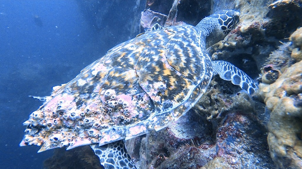 Dann schon wieder fertigmachen zum zweiten Tauchgang. Da gabs aber leider sehr wenig zu sehen. Immerhin, die Meeresschildkröte lässt uns so nah heran, dass die schlechte Sicht fast gar nicht auffällt ☺️