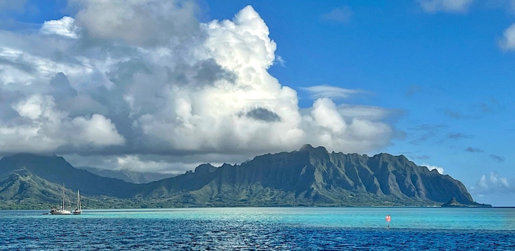 Wir haben uns entschieden, noch einige Tage in Hawai’i zu bleiben und die Abfahrt nach Alaska etwas zu verschieben. Aus der quirligen Großstadt Honolulu verabschieden wir uns aber, um den Süden von O’ahu herum fahren wir auf die Ostseite der Insel, in die Lagune von Kāne’ohe. Es ist keine Spazierfahrt, ziemlich schaukelig und erst im letzten Drittel vernünftig segelbar.