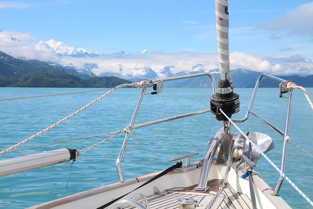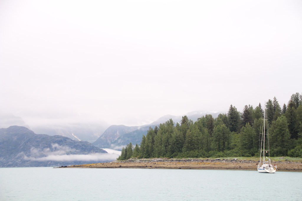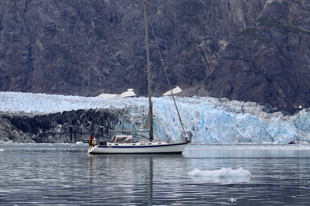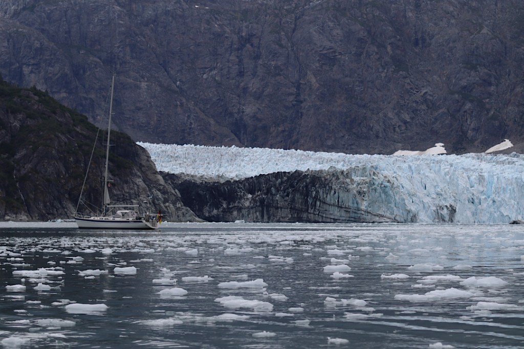 Unser Ankerplatz vor dem Gletscher im Reid Inlet mit dem gletschergrünen Wasser: