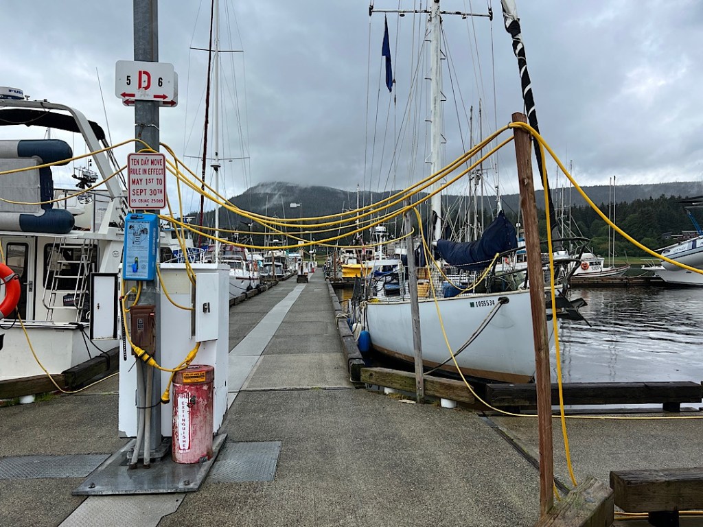 Donna und Bill leben ganzjährig in Alaska auf ihrer „Denali Rose“. Sie versichern uns, dass die Wasserflächen in den Häfen hier nicht zufrieren. Das Hochlegen der Landstromkabel sei aber nicht nur dem einfacheren Hinüberrollen mit den Hafenkarren geschuldet, sondern im Winter eine Notwendigkeit, um den Schnee maschinell von den Stegen räumen zu können.
