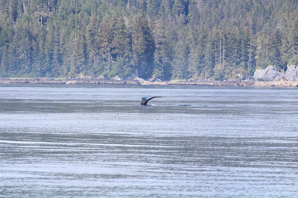 Bei herrlichem Wetter lichten wir Anker und fahren den Frederic Sound um die Südspitze von Admirality Island herum, queren die Chatham Strait und laufen in die Warm Springs Bay ein. Den ganzen Tag über sehen wir immer wieder Wale. Mal noch weit entfernt vor dem Hintergrund der hohen weißen Spitzen von Baranof Island, mal zeigen die Buckelwale ihre Fluken dicht an der Flora. Haben wir doch schon gesehen? Ja, aber es fasziniert uns jedesmal aus Neue.