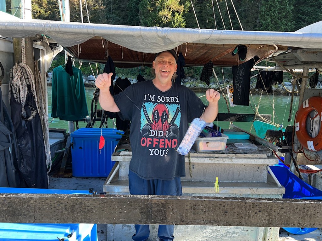 Auf einem Dinghyausflug in eine Nebenbucht sehen wir neben einem Grizzly am Ufer auch viele Lachse im flachen Wasser. Ich hole meine Angel und kann tatsächlich erstmals einen Pink Salmon an den Haken bekommen. Zurück am Steg bietet mir der Fischer Jeff von seinem Kutter aus an, mir das korrekte Filetieren des Lachses zu zeigen. Nehme ich natürlich gerne in Anspruch und seine Technik unterscheidet sich auch deutlich von der, die ich bisher bei Thunfisch und Mahi Mahi erfolgreich angewendet habe. Gut zu wissen.