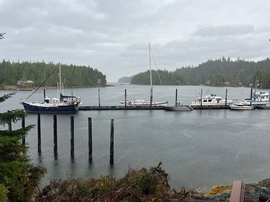 Der Durchzug einer Front ist angekündigt, deshalb suchen wir Schutz im Naturhafen Meyer‘s Chuck. Wir haben Glück, am (kostenlosen) Floating Dock, zugleich Anlegepunkt für das Post-Wasserflugzeug, dass den abgelegenen Ort regelmäßig einmal pro Woche anfliegt, ist noch reichlich Platz frei. Ankern wäre auch möglich, aber bei dem vorhergesagten Wind von bis zu 40 kn ziehen wir den Platz am Schwimmsteg vor.