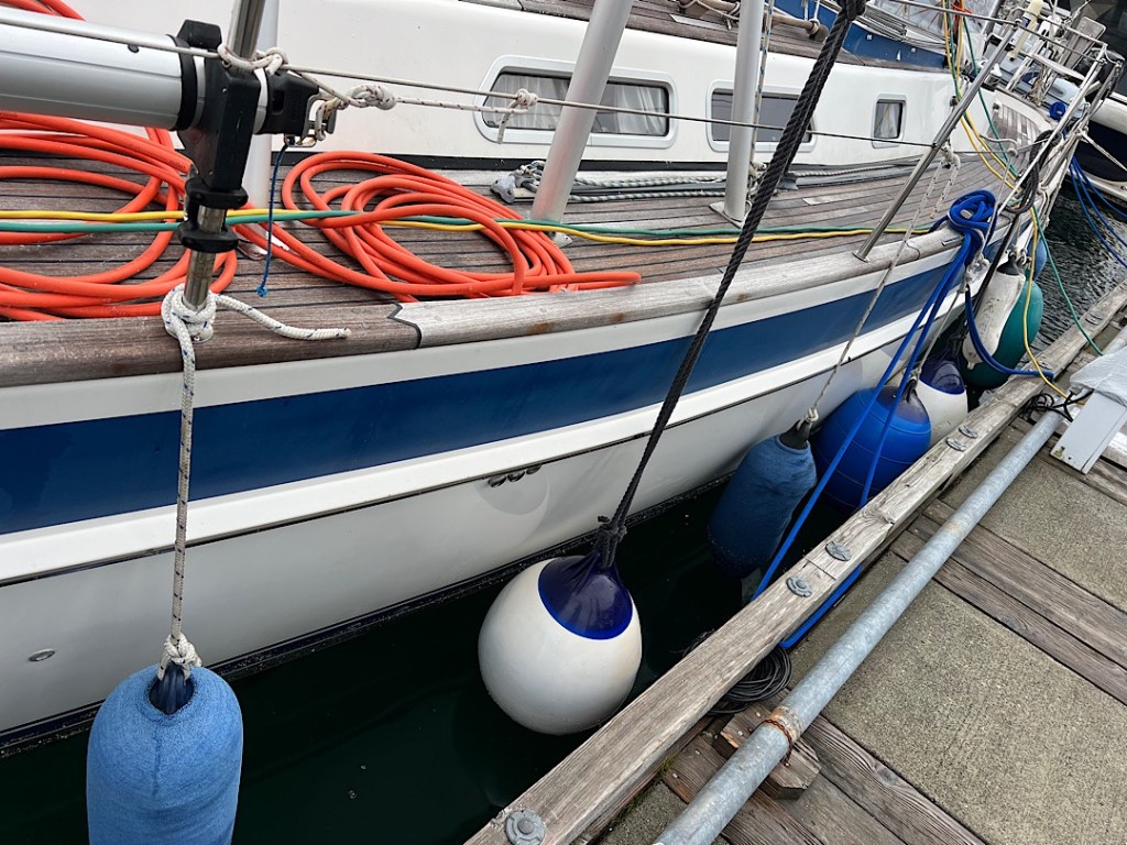 Überhaupt, was machen denn unsere Vorbereitungen? Wir kommen voran. Die Stauräume unter den Kojen sind durchsortiert, die dort von Schwitzwasser und damit leichtem Spak betroffenen Behältnisse gereinigt oder ausgemustert, das Dinghy umgedreht auf dem Vorschiff verzurrt, der Außenborder mit Frischwasser durchgespült und eingewintert, Frostschutzmittel besorgt, die Batterie an Fendern aufgeblasen