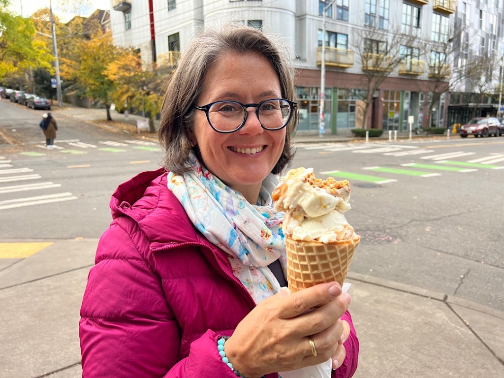 … bei “Salt & Straw” ein (richtig leckeres) Eis zu kaufen (hier Roasted Peach & Sage Cornbread aus der Limited Thanksgiving Edition)
