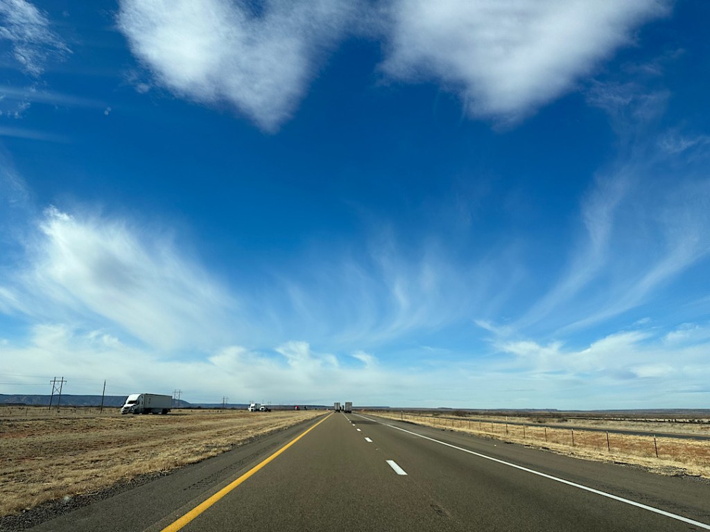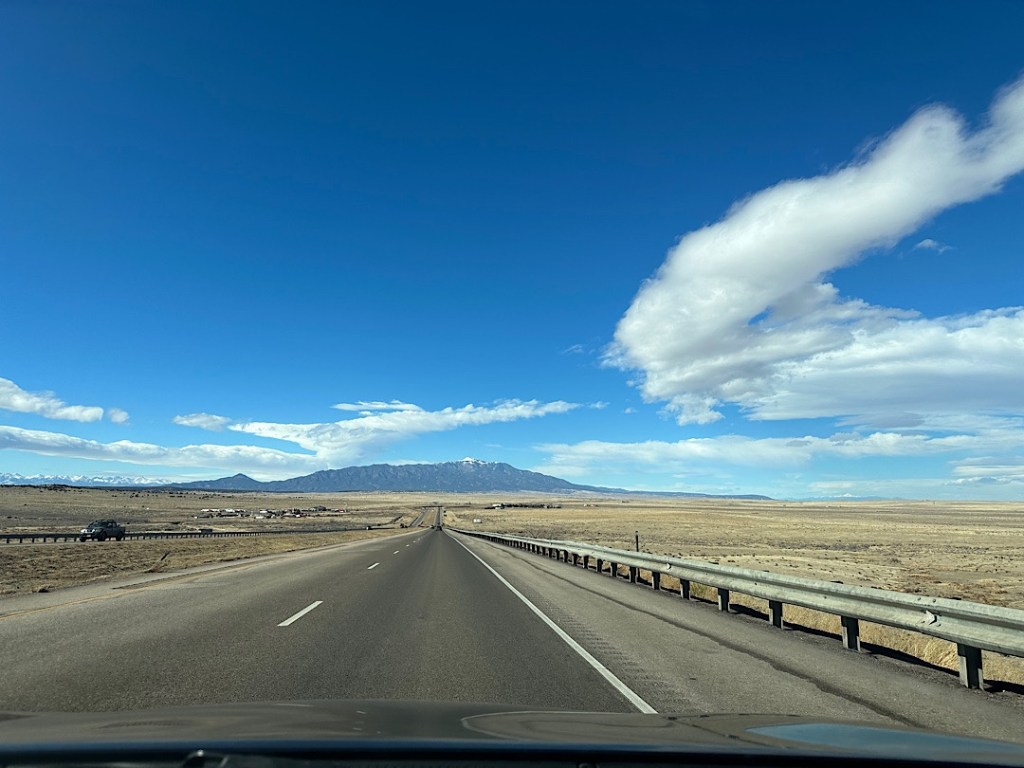 Die Fahrt von Santa Fe nach Denver bringt uns nicht nur von New Mexico nach Colorado, sondern auch (erstmal) wieder aus den Rocky Mountains hinaus in die flache Prärie der “Great Plains”. Diese riesige Grasland-Steppenzone ist den Rocky Mountains östlich vorgelagert und reicht bis an das Gebirge heran.