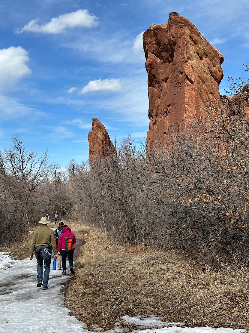 Und wir fahren aus der Stadt hinaus, wandern durch den winterlichen Roxborough State Park. Hier finden sich spektakuläre geologische Formationen. Die roten Sandsteinfelsen etwa lassen erahnen, warum die Spanier dieses Gebiet “Colorado” genannt haben. Mit grünen Blättern an den hier nur gut buschhoch werdenden und dennoch weit verbreiteten Eichen sieht es im Sommer wahrscheinlich noch einmal ungleich bunter aus.