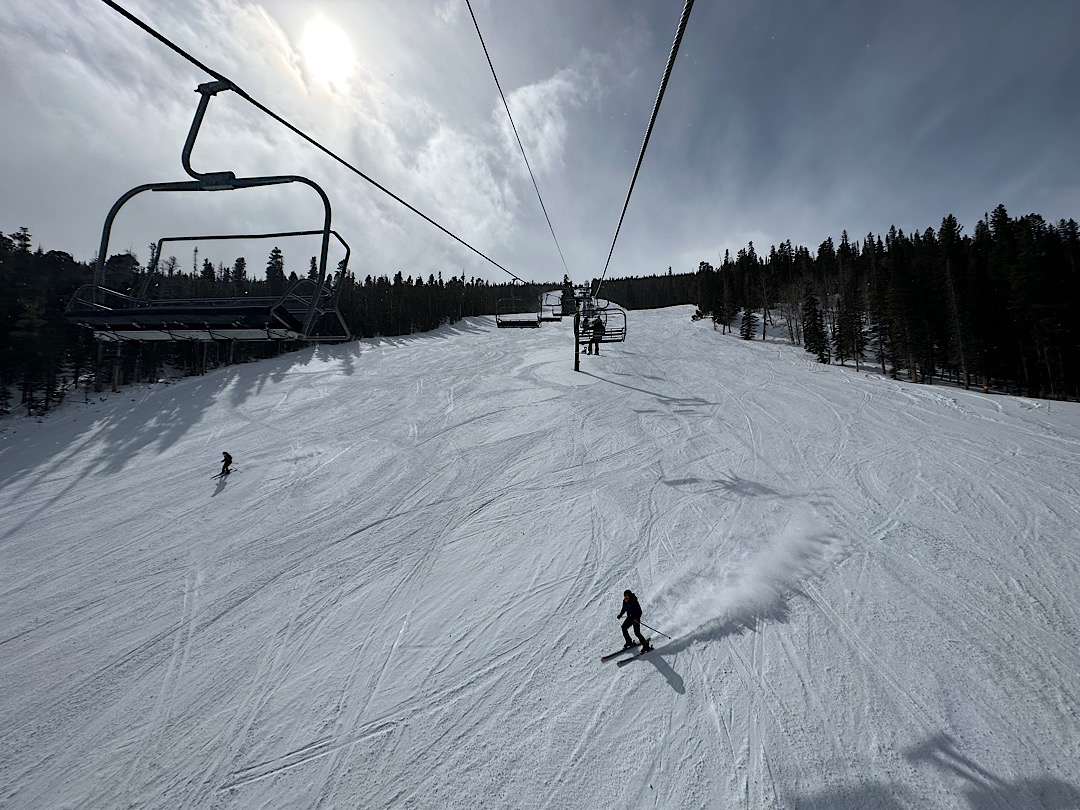Fast unmittelbar westlich von Denver geht es hinauf in die bis zu 4.400 m hohen Rocky Mountains. Hier liegen die berühmten Skigebiete von Aspen und Vail, aber auch eine Vielzahl weniger bekannter (und noch näher an Denver gelegene) Wintersportorte. Mit Karen und Steve fahren wir in der Woche unseres Besuchs gleich dreimal in die Skiregionen von Breckenridge und Eldora und genießen den herrlichen Pulverschnee (wobei: am ersten Tag macht mir die Höhe scheinbar etwas zu schaffen, an den anderen beiden Skitagen ist es aber wunderbar)!