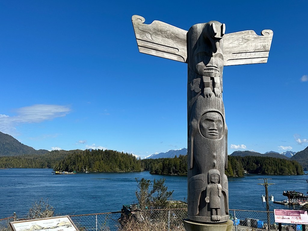 Und Tofino wartet mit indigener Kunst, wundervolle Ausblicken zu schneebedeckten Bergen und trotzdem sogar mit Palmen in den Gärten auf.