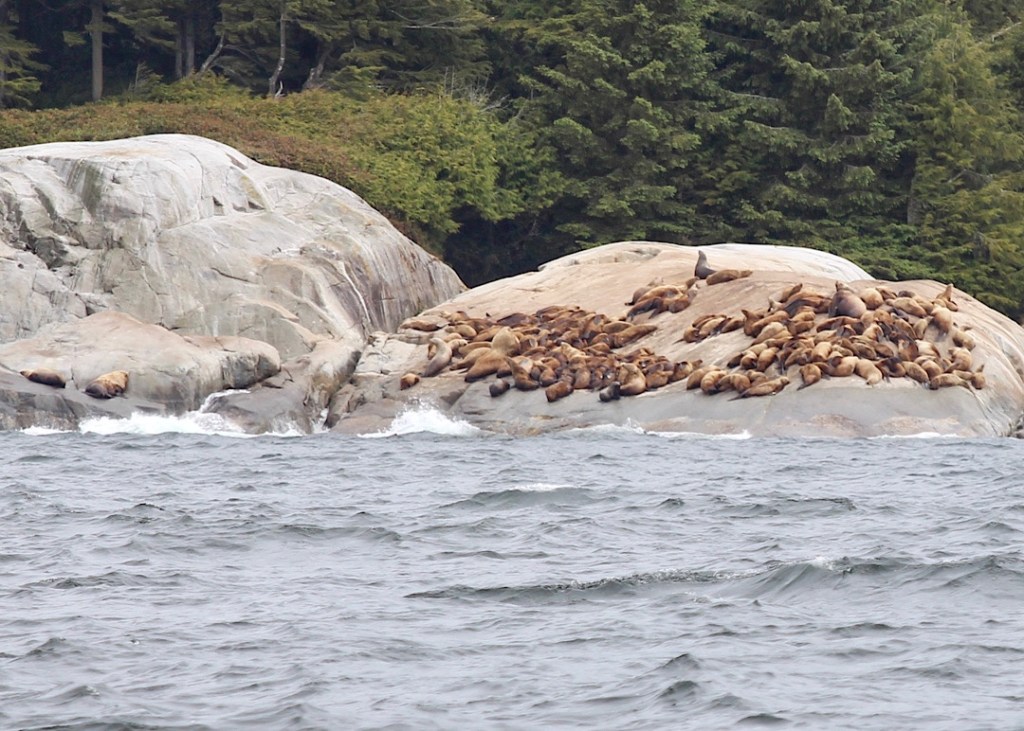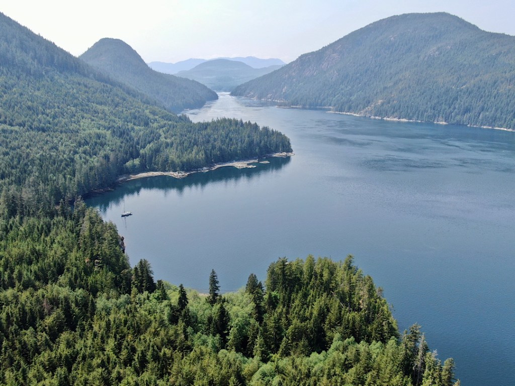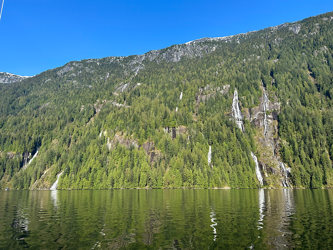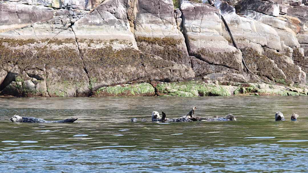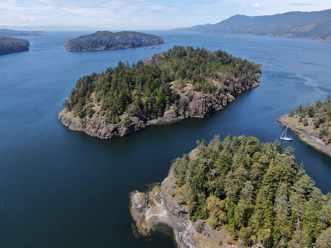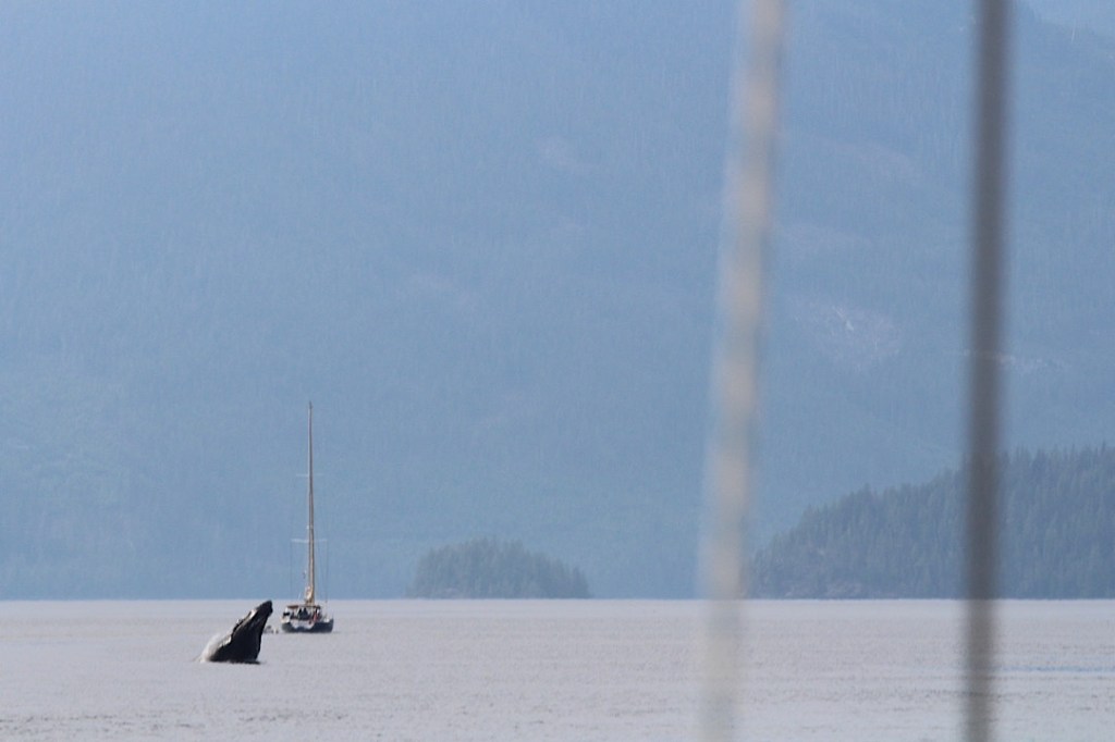 Unsere Route führt uns zunächst unter Motor von Mound Island durch die enge und schöne Providence Passage an Midsummer Island vorbei hinaus in offeneres Wasser. Dort gehen die Segel hoch. An Backbord zeigt sich in der Ferne der Gebirgszug auf Vancouver Island, an Steuerbord die Inselwelt der Broughtons. Wow.