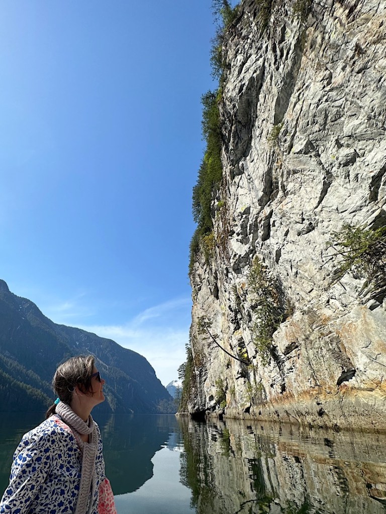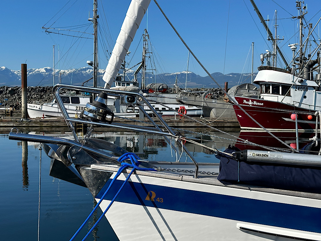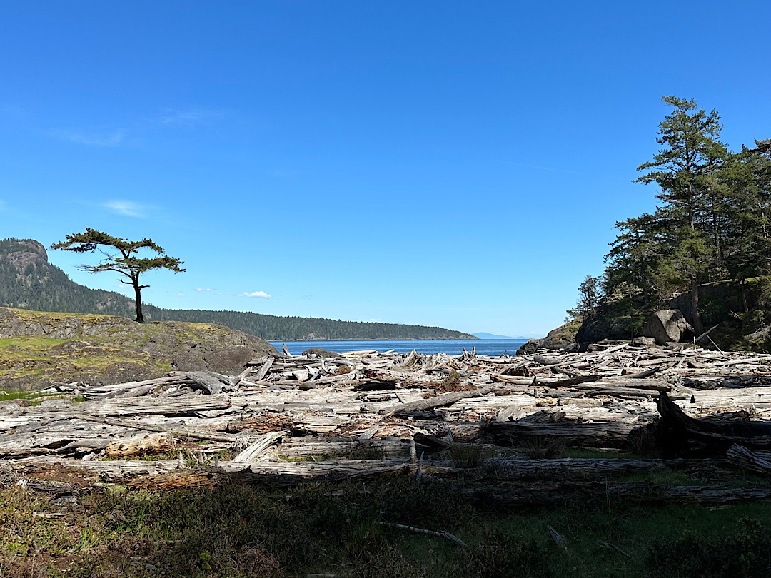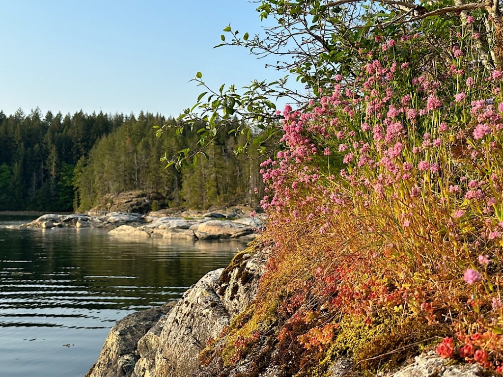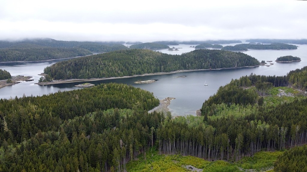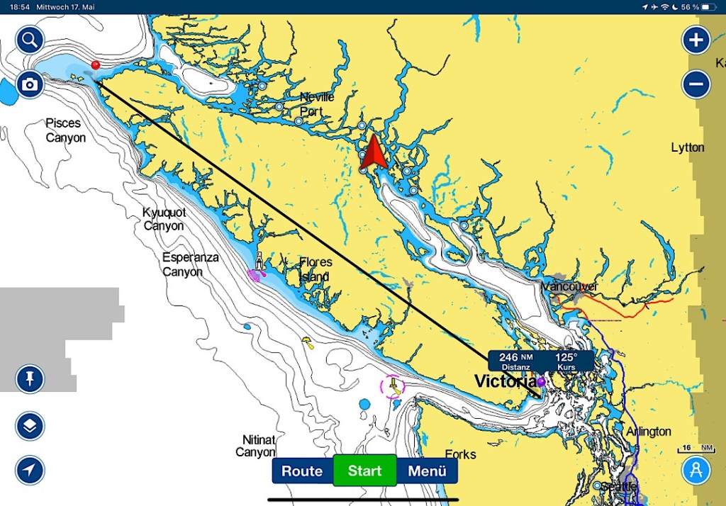 Unsere Route führt uns zunächst unter Motor von Mound Island durch die enge und schöne Providence Passage an Midsummer Island vorbei hinaus in offeneres Wasser. Dort gehen die Segel hoch. An Backbord zeigt sich in der Ferne der Gebirgszug auf Vancouver Island, an Steuerbord die Inselwelt der Broughtons. Wow.