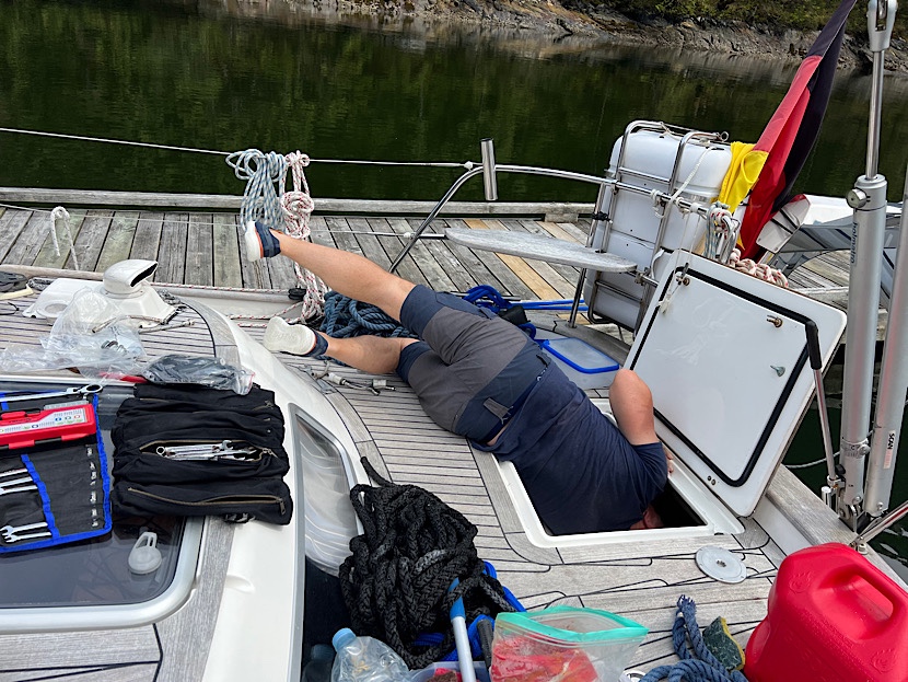 Und weil die Entfernungen zwischen den traumhaften Ankerplätzen nicht wirklich groß sind, kommen wir auch mal wieder etwas intensiver zum Stricken. Ich bringe tatsächlich mein Pullover-Projekt zum Abschluss:
