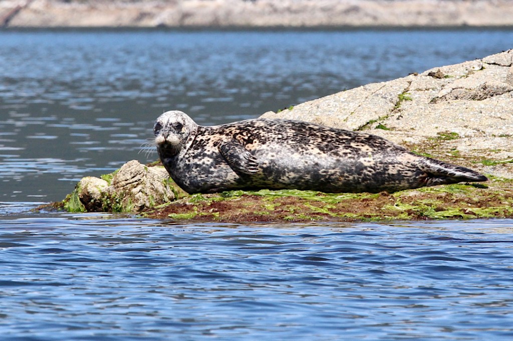 Zwischen platt vor dem Laken (Wind genau von hinten) und kreuzen (Wind genau von vorn) ist alles dabei, ebenso zwischen 2 kn und 25 kn Wind. Aber das Wetter ist gut, der Fjord ist schön breit und nach der dicht gedrängten Kolonie Stellerscher Seelöwen gleich zu Beginn der Fahrt hebt ein vor der Flora abtauchender Buckelwal die Stimmung nochmals.