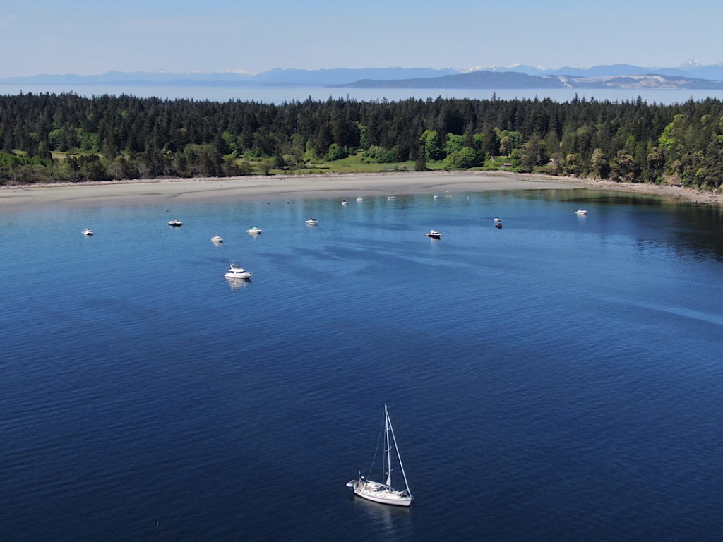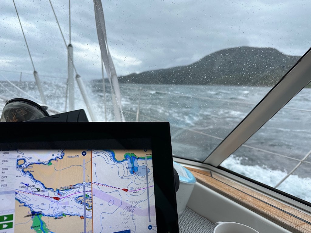 Heute schaffen wir es dann sogar den ganzen Tag zu segeln, obwohl der Kurs “innen” (also östlich) um Broughton Island herum führt.