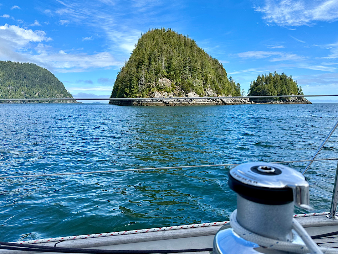 Wir machen uns auf in Richtung Gwaii Haanas, legen aber noch zwei Zwischenstationen ein. Wegen des für Dienstag vorhergesagten Starkwindes segeln wir am Sonntag erst einmal gut 50 sm hinunter nach Thurston Harbour und am nächsten Tag dann weiter in das sehr gut geschützte Crescent Inlet.
