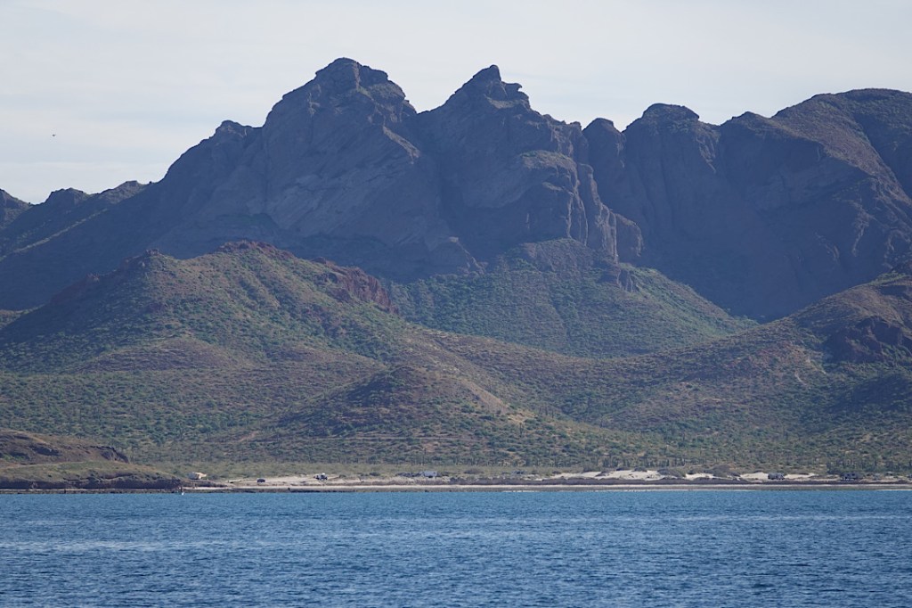 Die Stadt zieht sich inzwischen einige Meilen weiter die Küste entlang, aber im Laufe der nächsten Nachtfahrt bleibt die dichte Bebauung achteraus und am nächsten Morgen präsentiert sich die Baja California auf ihrer Innenseite wieder als eher dünn besiedelte Landschaft. Und doch anders, als wir sie erwarten: hier im Süden grüner, gebirgiger, scharfkantiger. Ein faszinierendes Wechselspiel von Klippen und Stränden, dass langsam erneut karger wird, je weiter wir wir wieder nach Norden kommen.